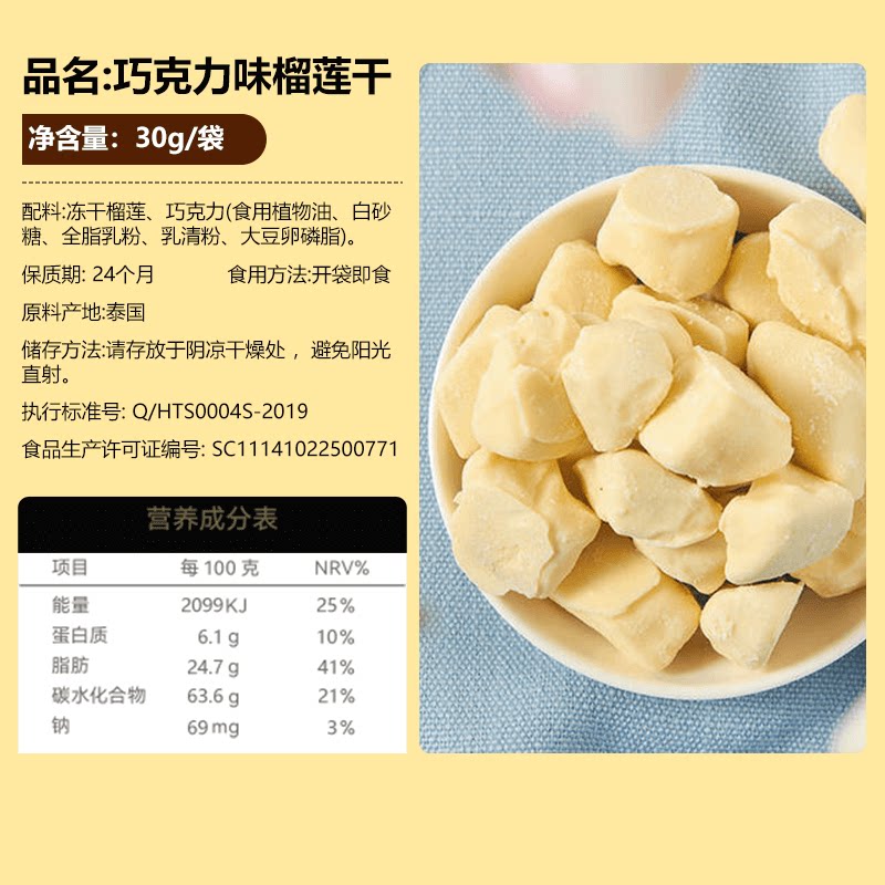 Chocolate durian dry 30g * 1 bag of chocolate durian dry 30g * 2 bags
