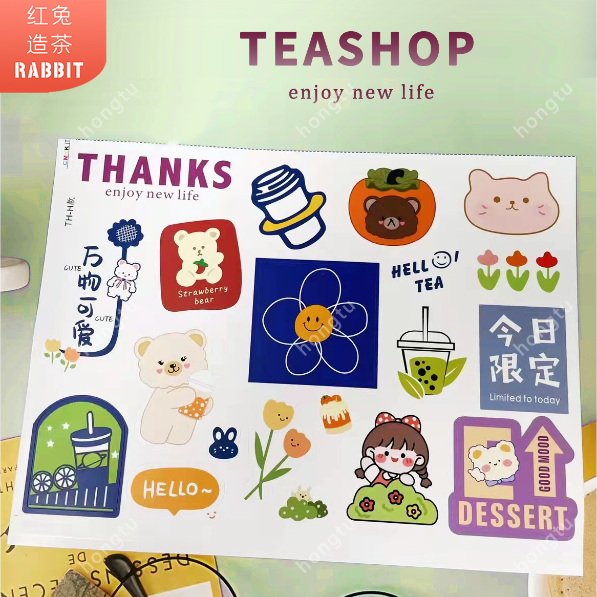 Sen girl heart milk tea cup stickers net red coffee cup stickers waterproof cute small fresh baking decoration hand account stickers