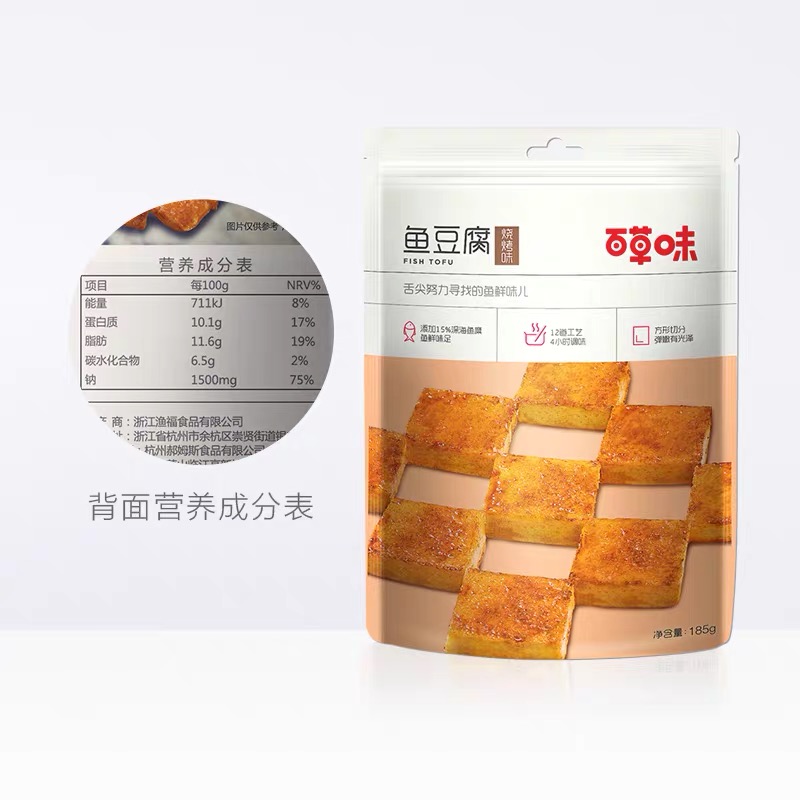 Baicao Flavor Spicy Fish Tofu BBQ Fish Tofu 185gx2 Bags Supplementary Fish Dried Fish Tofu Casual Snack Small Dried Tofu