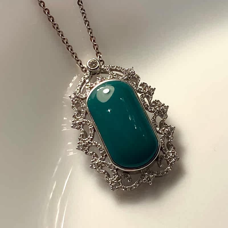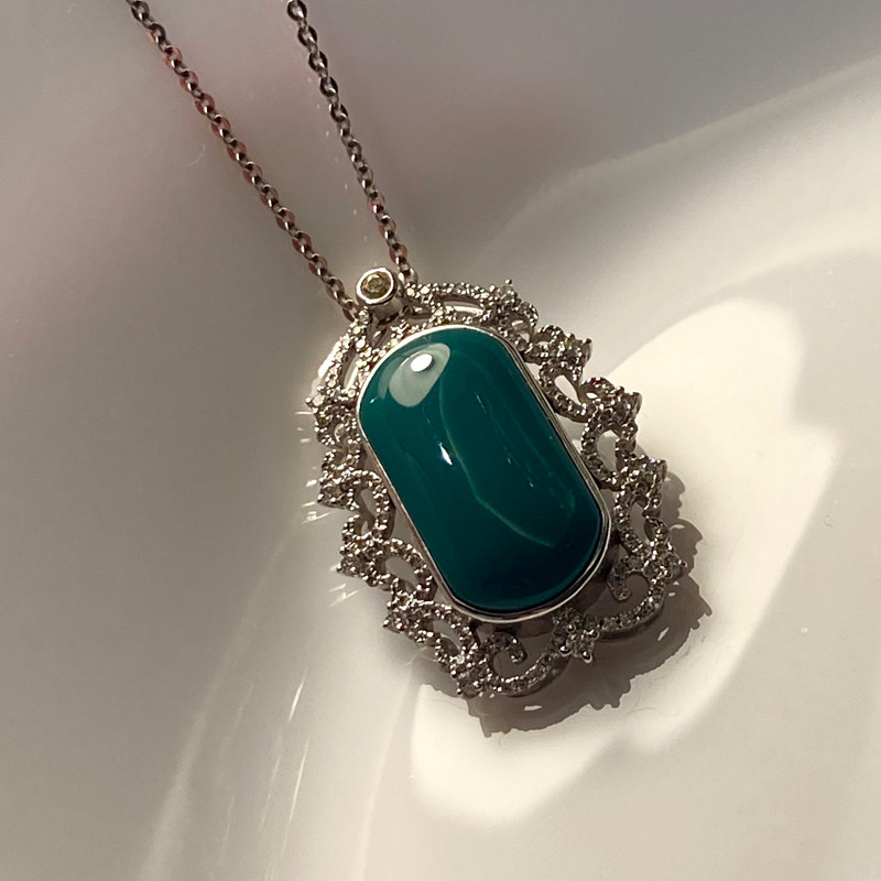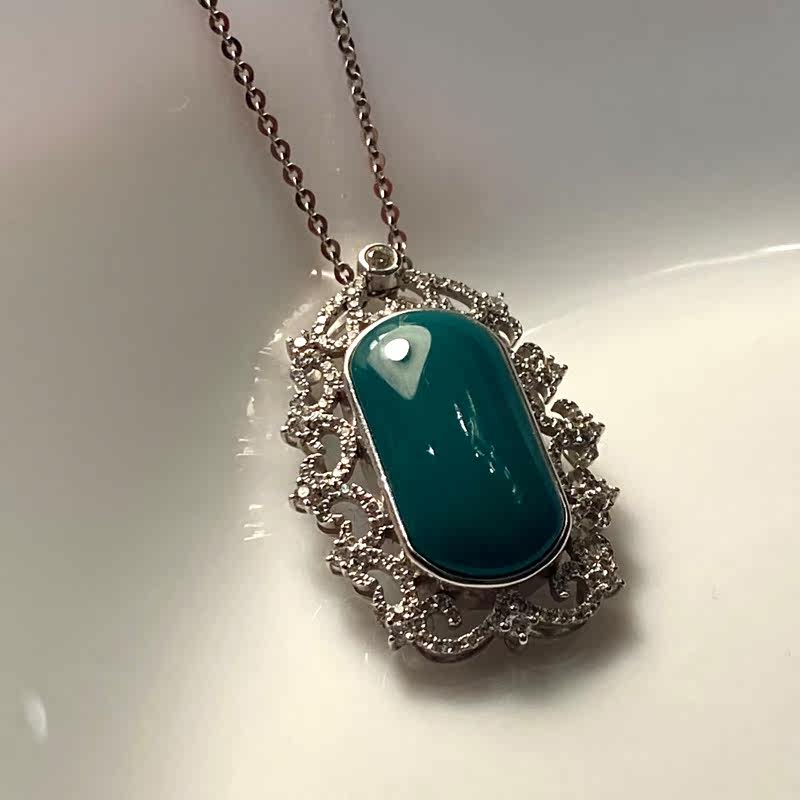 Raw ore jade blue turquoise dark blue hole inlaid with 18k white gold base necklace square pendant