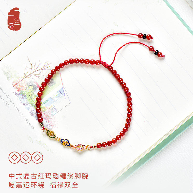 Life Stone 2022 summer new natural red agate feet braided fashion girls footchain