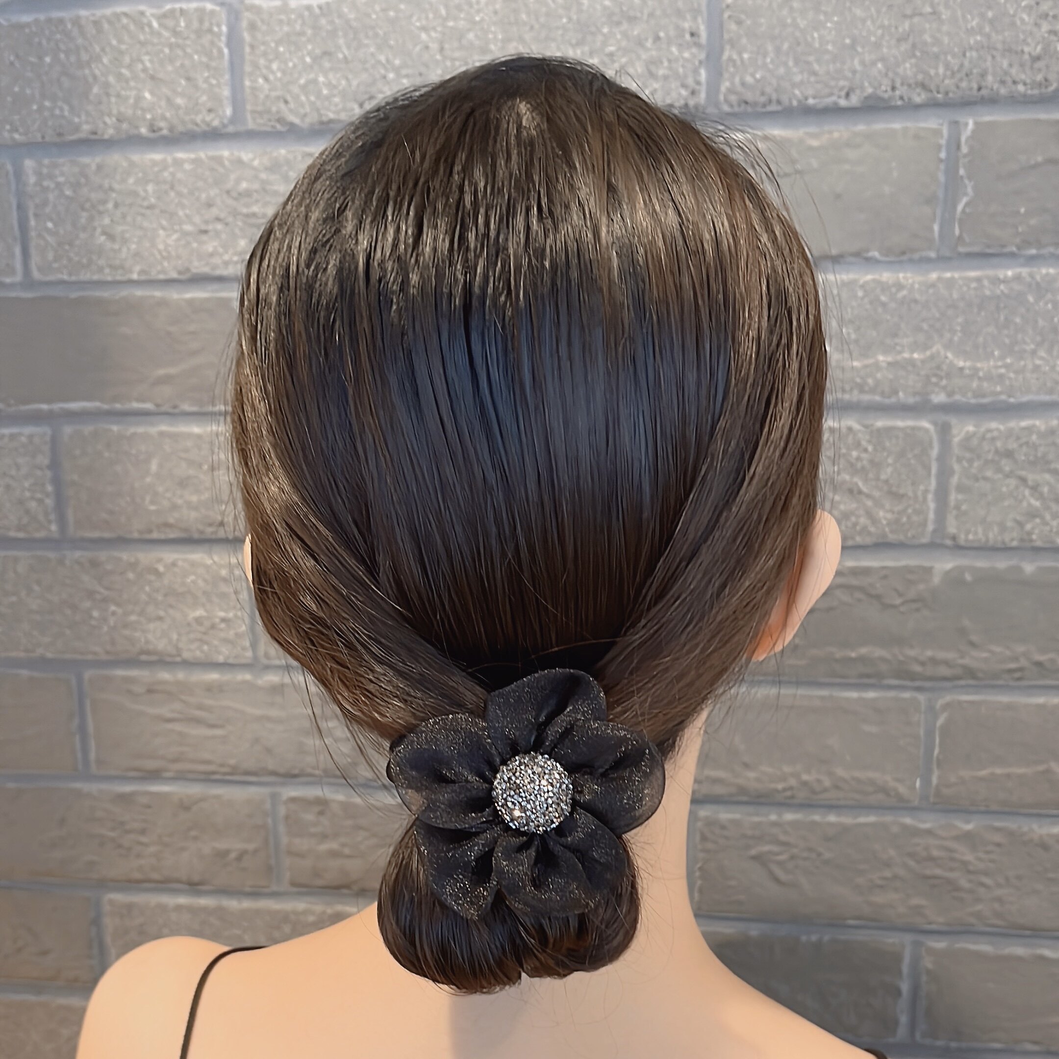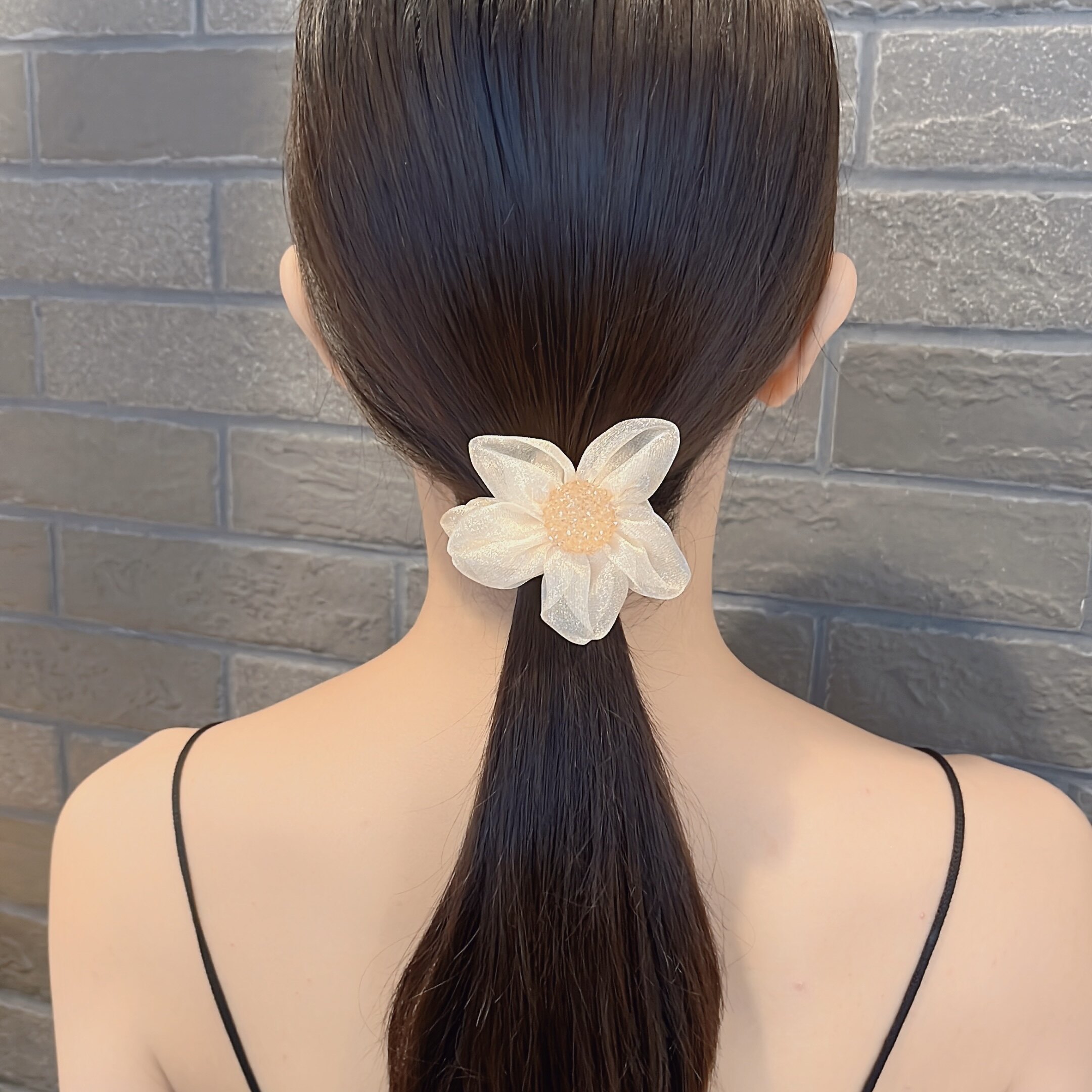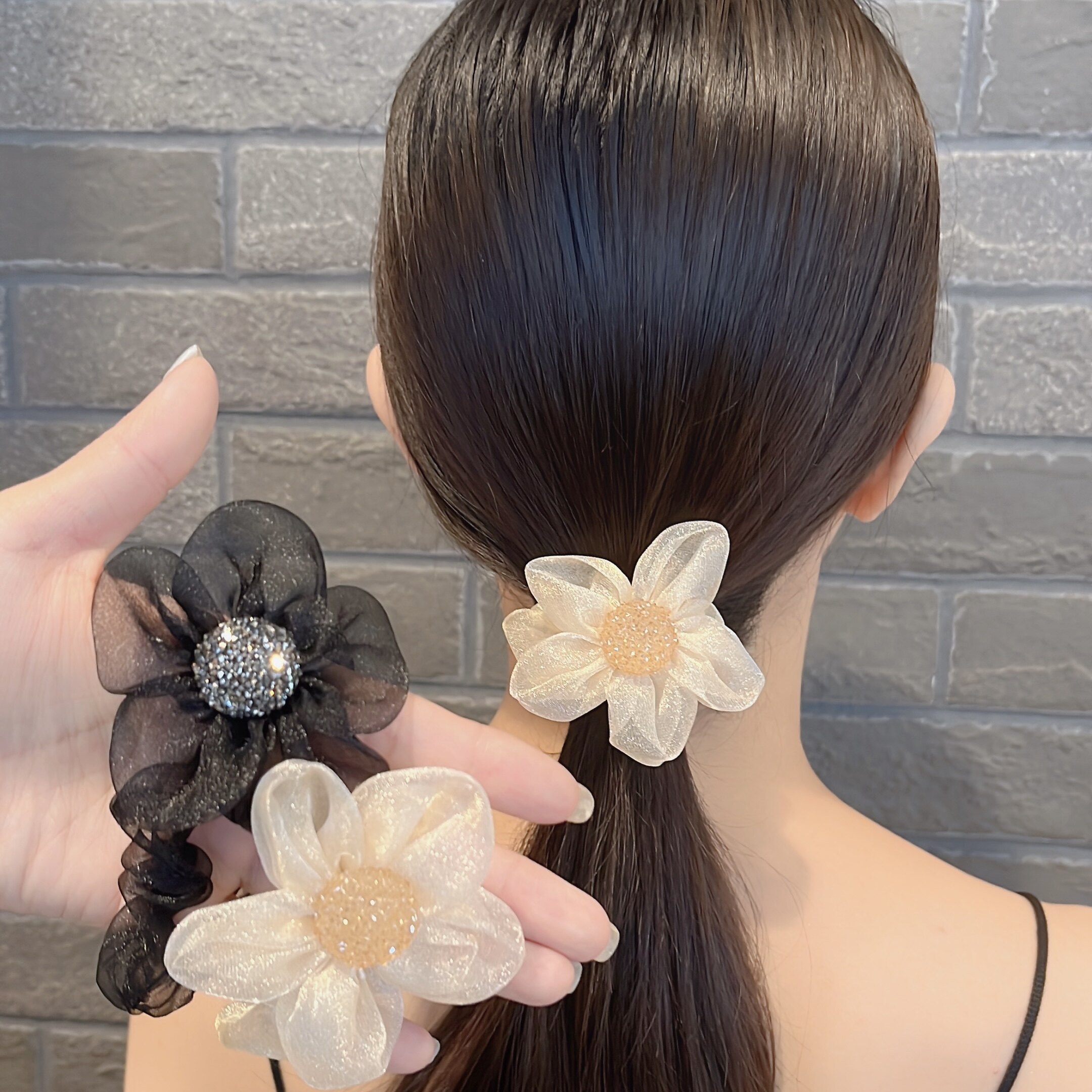 Fabric hair accessories two light luxury mesh shiny rhinestone sun flower hair circle ponytail hair rope meatball hair circle summer