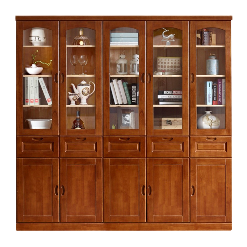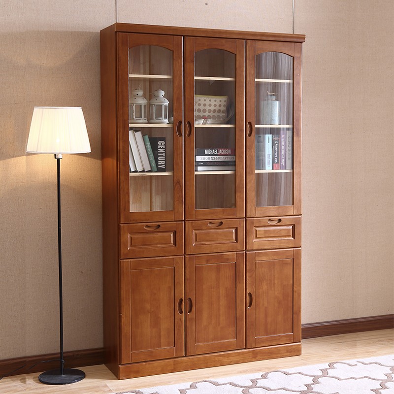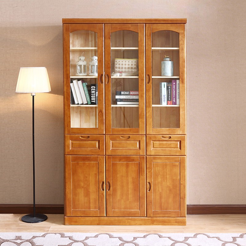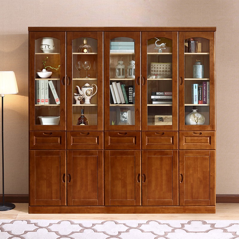 Full solid wood bookcase log with dust glass door to floor bookcase student children Chinese bookcase Nordic modern