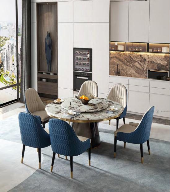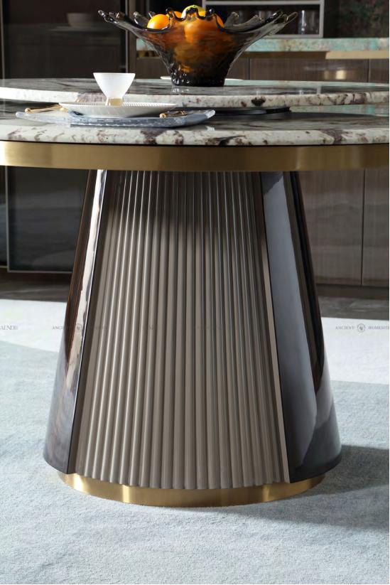 Allensite Furniture Marble Dining Table Round Solid Wood Stainless Steel Modern Light Luxury Dining Table Dining Table