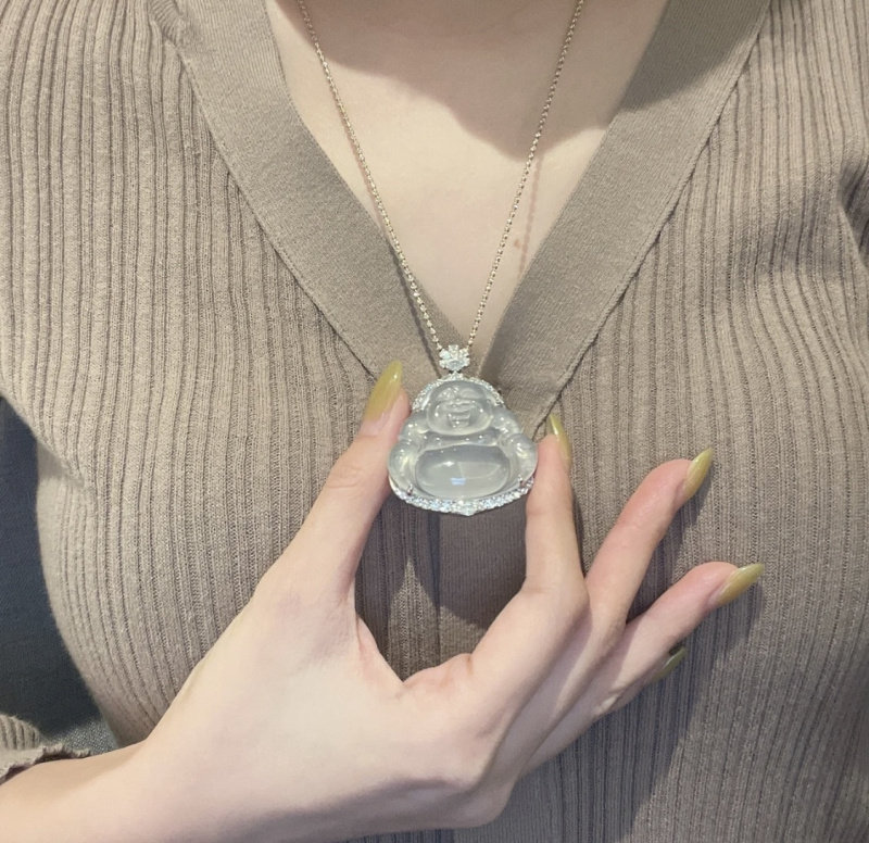 Ice type Emerald Buddha pendant Natural Burma A-shipBuddha necklace glass necklace