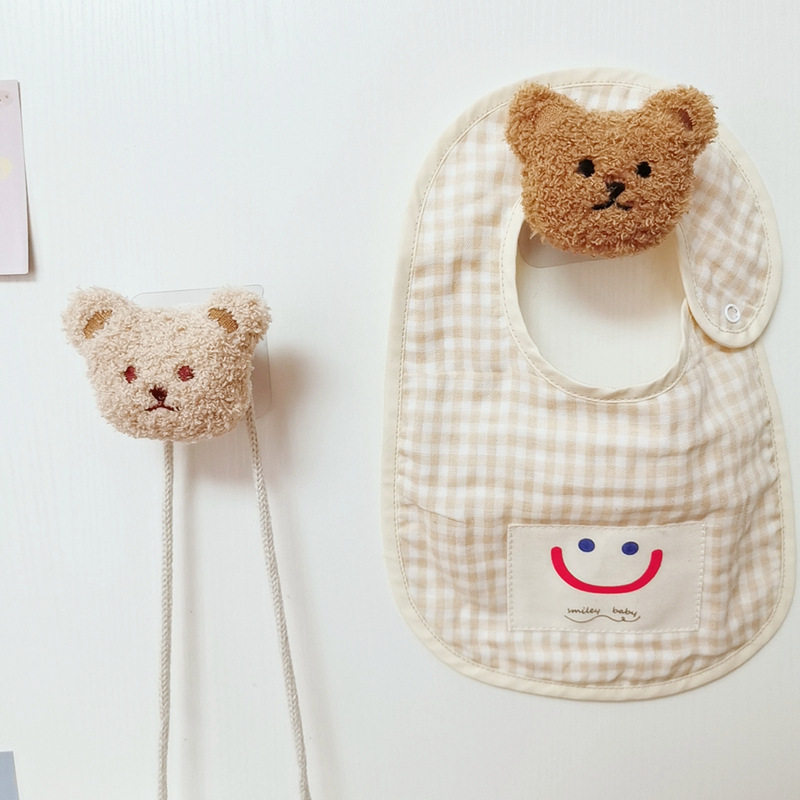 Korean in wind embroidered bear wood wall decoration hooked children's room dress wall hanging dress whole cabinet door bonded