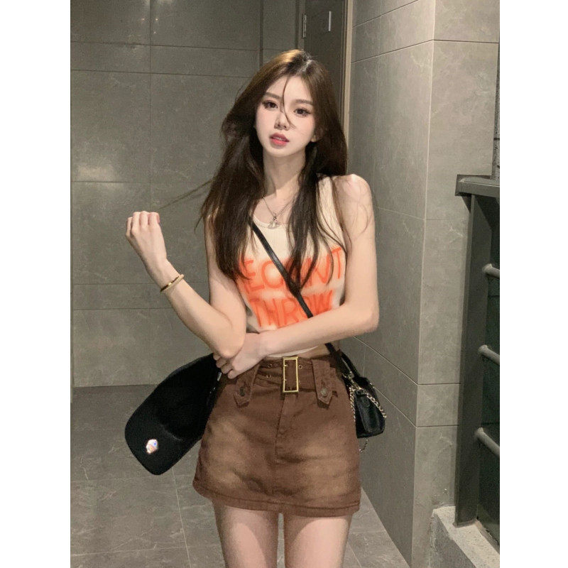 American Renaissance Render Print Dew-naveled Short Sleeves T-shirt Summer Sexy Hanging Vest Woman with T-shirt