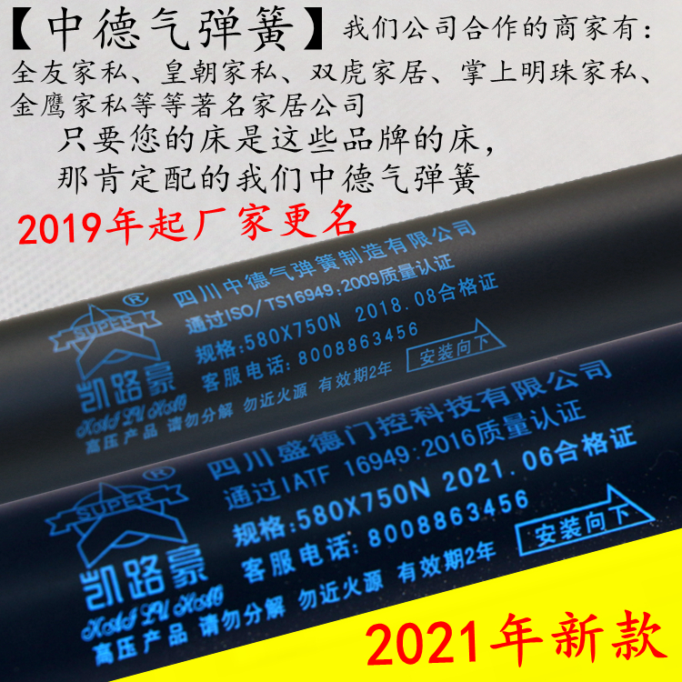 580X750N Private Hydraulic Rod Kelu Hydraulic Rod Bed with gas support for DGM spring