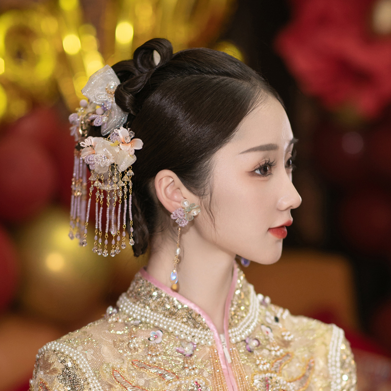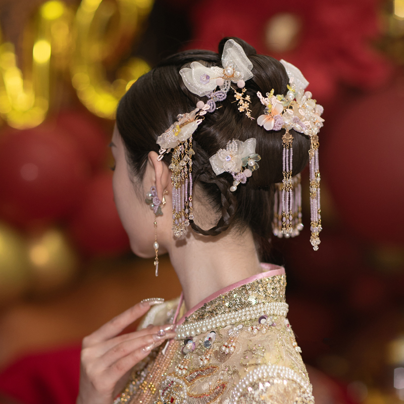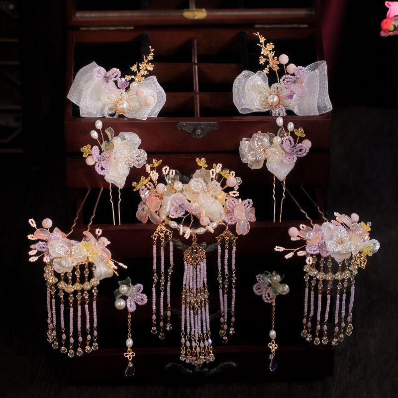 Bridal Chinese Hair Ornaments Ancient Wind Headwear New Vintage Hanfu Wedding Exterior View Writing Real Meritocracy and Costume Ancient Costume