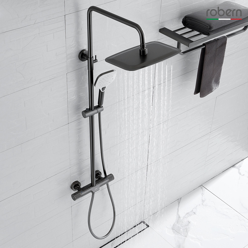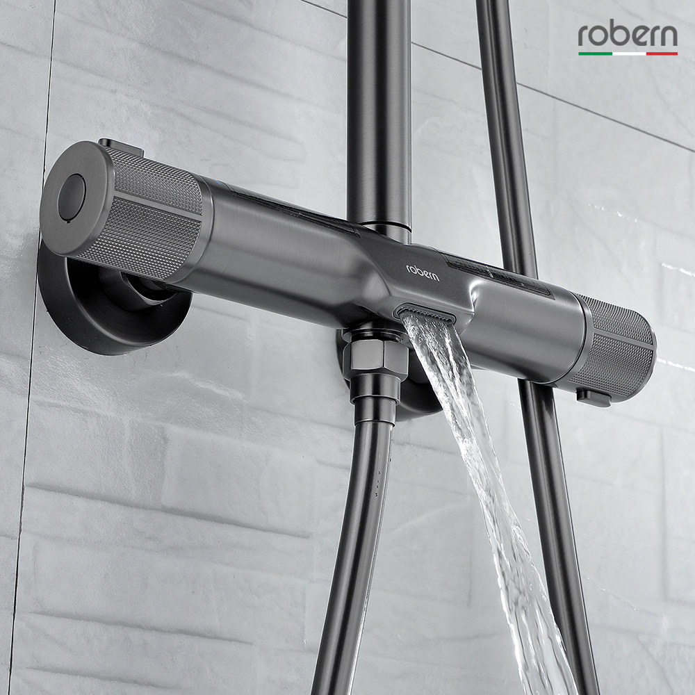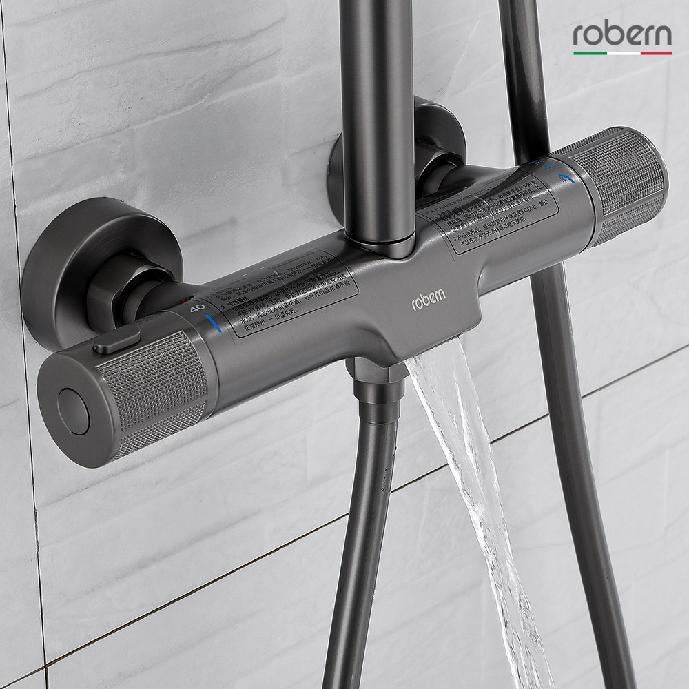 robern gun grey full copper thermostatic shower head shower set shower waterfall tap body wash shower nozzle Home