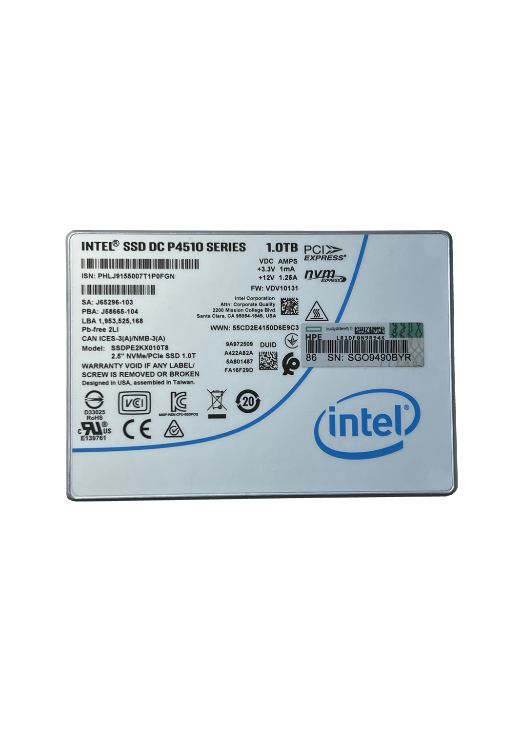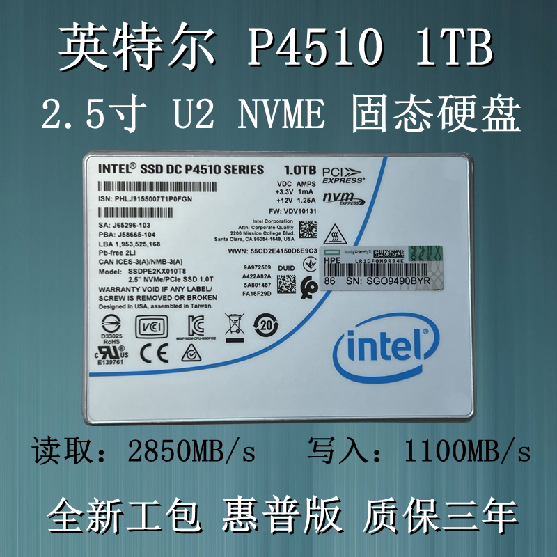 Intel Intel P4510 1TB U2 MVME Server Solid State Drive SSD PCIE3 0 Desktop