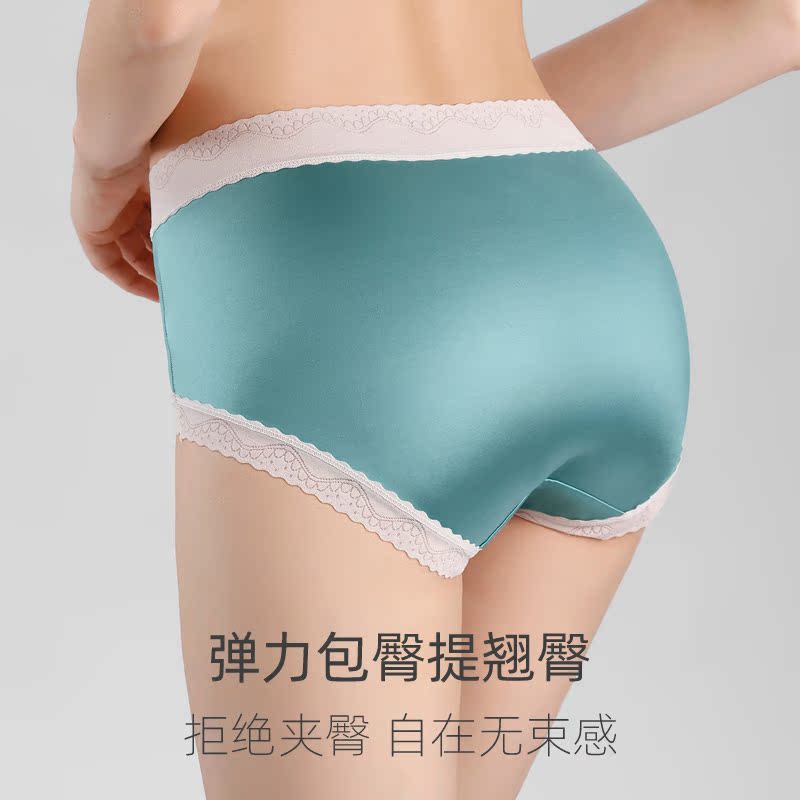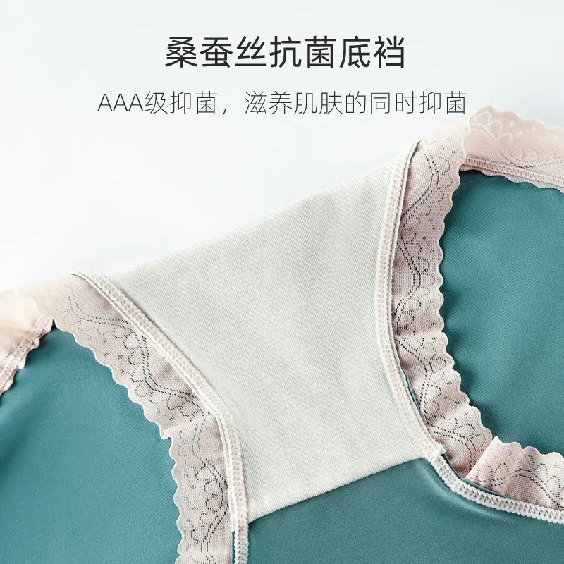 Large size underpants Women fat mm200 Mulberry Silk Cotton Antibacterial Crotch silk Lace Triangle Pants Mid Waist Comfort And Breathable