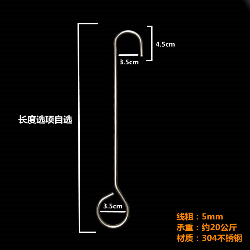 Hook 304 hook stainless steel thickened wearing pipe hook clotheshorse windproof hook sleeve hook S hook kitchen bathroom round pipe-Taobao