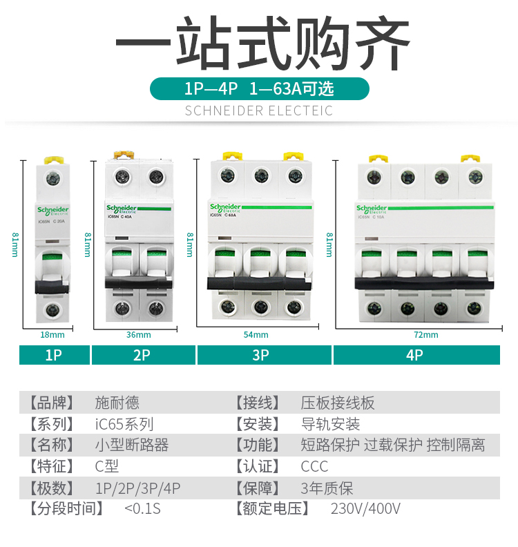 Schneider air switch A9 empty open IC65N breaker home 1P2P3P4P C10A16A20A32A63a