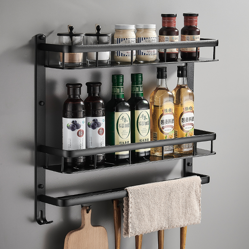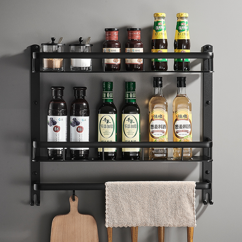 Kitchen shelf wall mounted punch-free flavored seasoning supplies household large-scale artifacts plus hanging rack