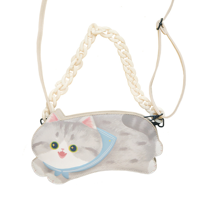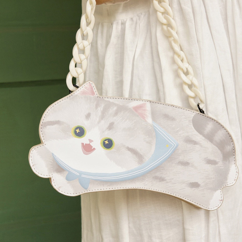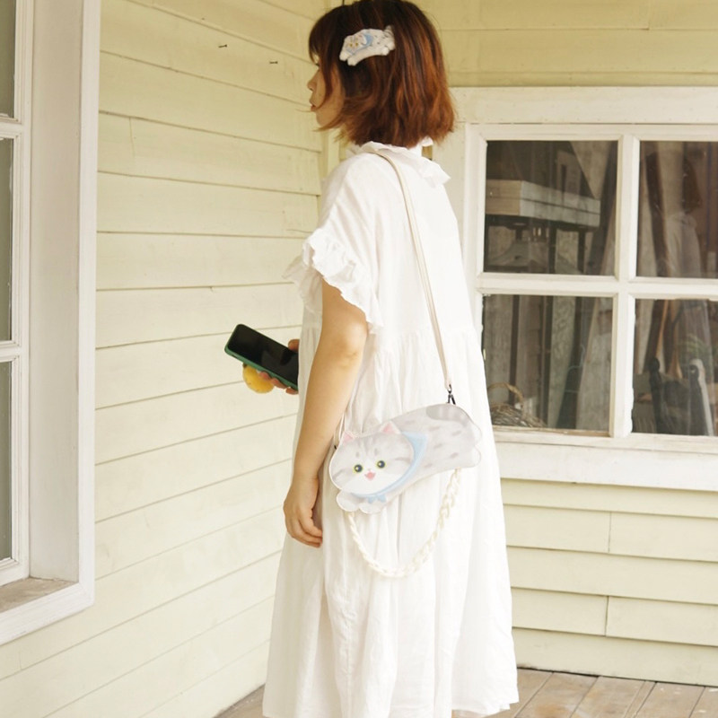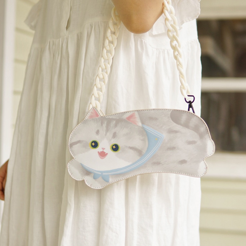 MEWJI Miaoji Original Cute Cat Illustration Japanese Casual Mobile Phone Bag Horizontal Version Hand Holding Underarm Bag Messenger Bag