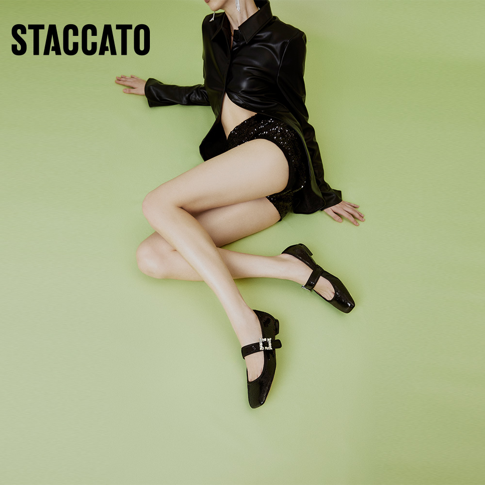 STACCATO2022 autumn new star shoes square head Mary Jane shoes flat shoes single shoes women's shoes 9UR30CQ2