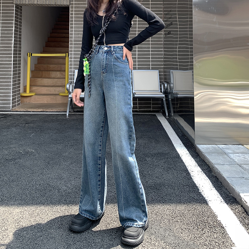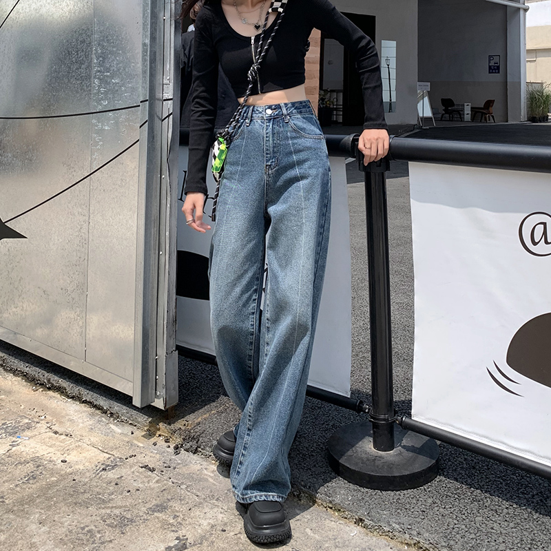 Retro High Waist Wide Leg Jeans Women's Summer Thin Section 2022 New Little Sub Loose Straight Barrel Covety Tug Pants