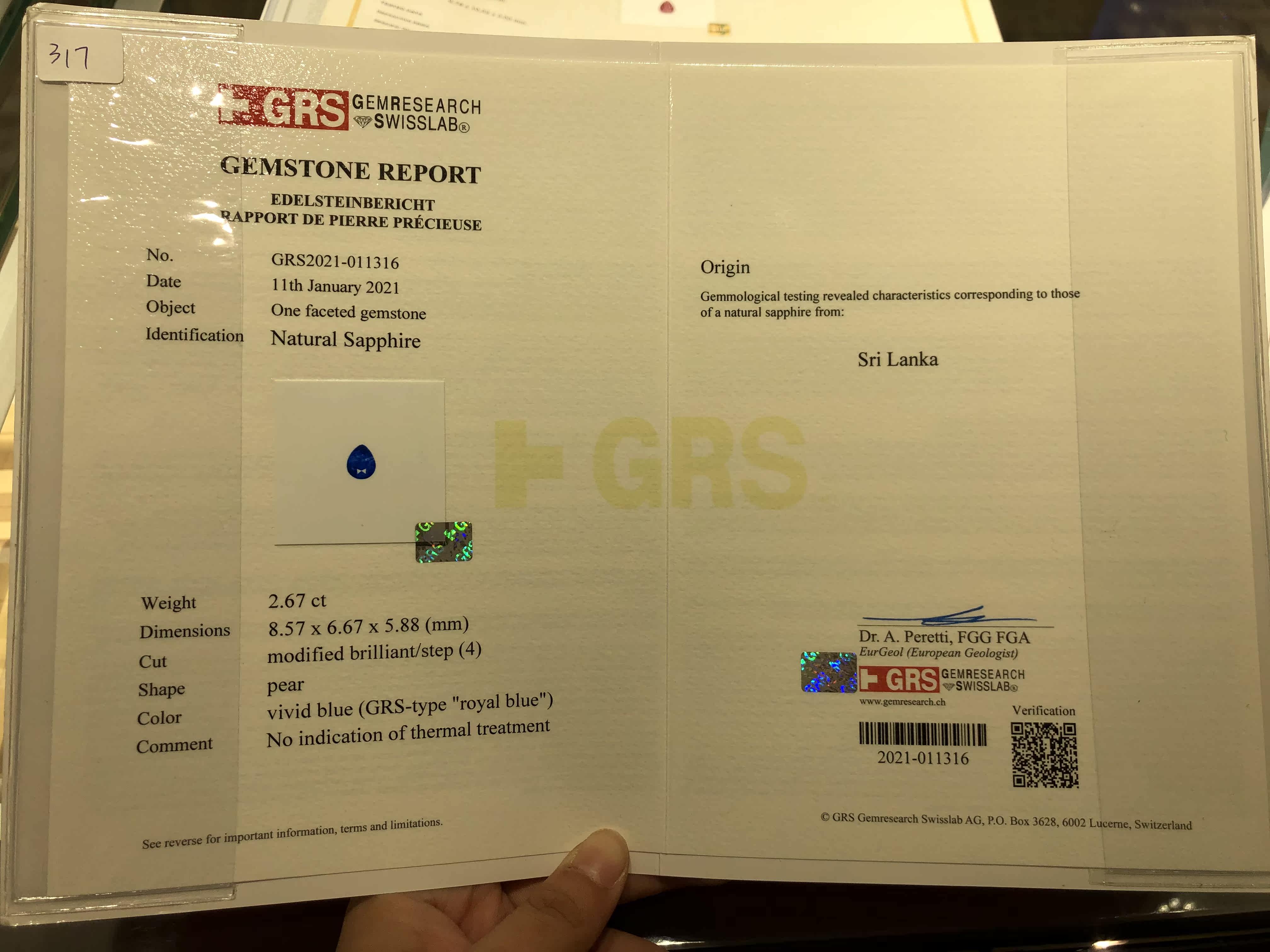 Caiyi jewelry 2 67ct Sri Lankan natural unburned royal blue sapphire bare stone high-end color treasure customization