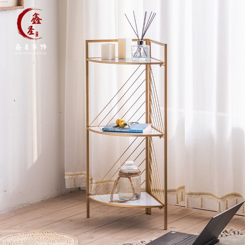 Nordic Wrought Iron Corner Shelf B&B Living Room Bedroom Sundries Storage Rack Bathroom Corner Folding Flower Shelf