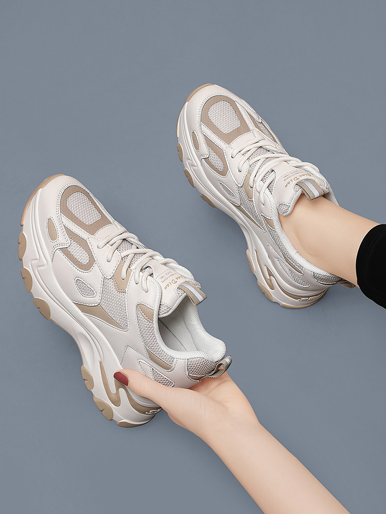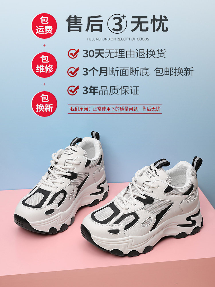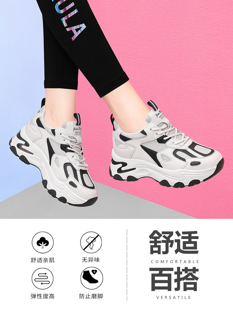 Real leather panda daddy shoes in 2022 new spring and autumn thick soles increase leisure sports shoes