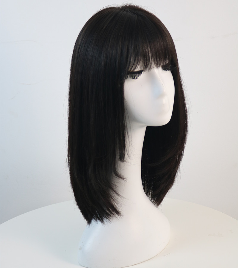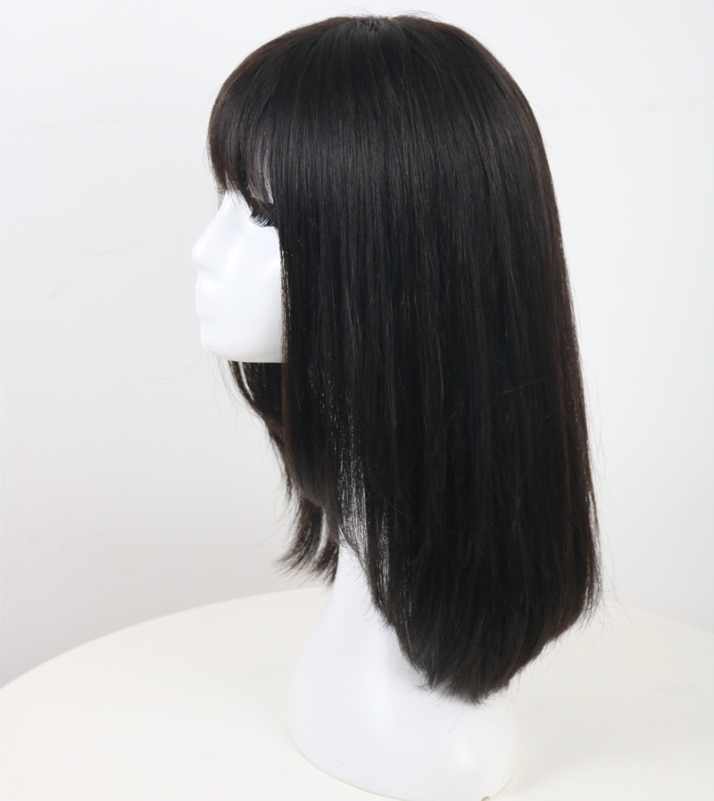 Lace real hair delivery needle cover simulates human scalp natural lifelike broken bangs medium length slightly curly clavicle hair girl