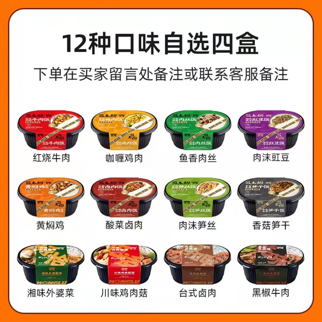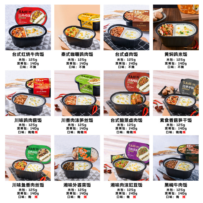 400G Sichuan Taste Chicken mushrooms Rice Black Pretzels Beef Rice Meal Desktop brine Fried Rice 400G 400G Sichuan Taste Fish Cilantro Meat rice Desktop Red Burnese Beef Rice Thai style curry chicken rice