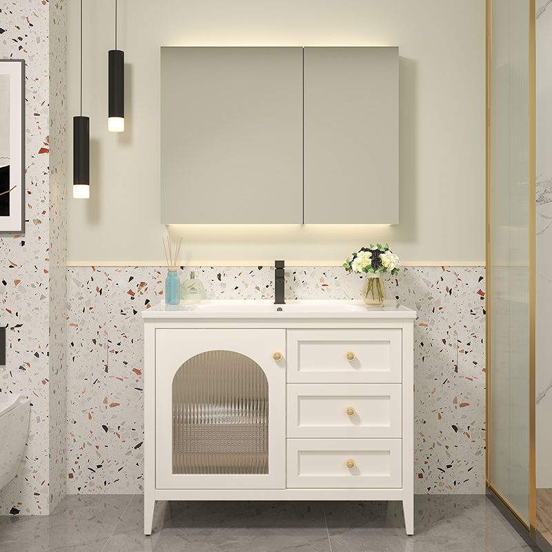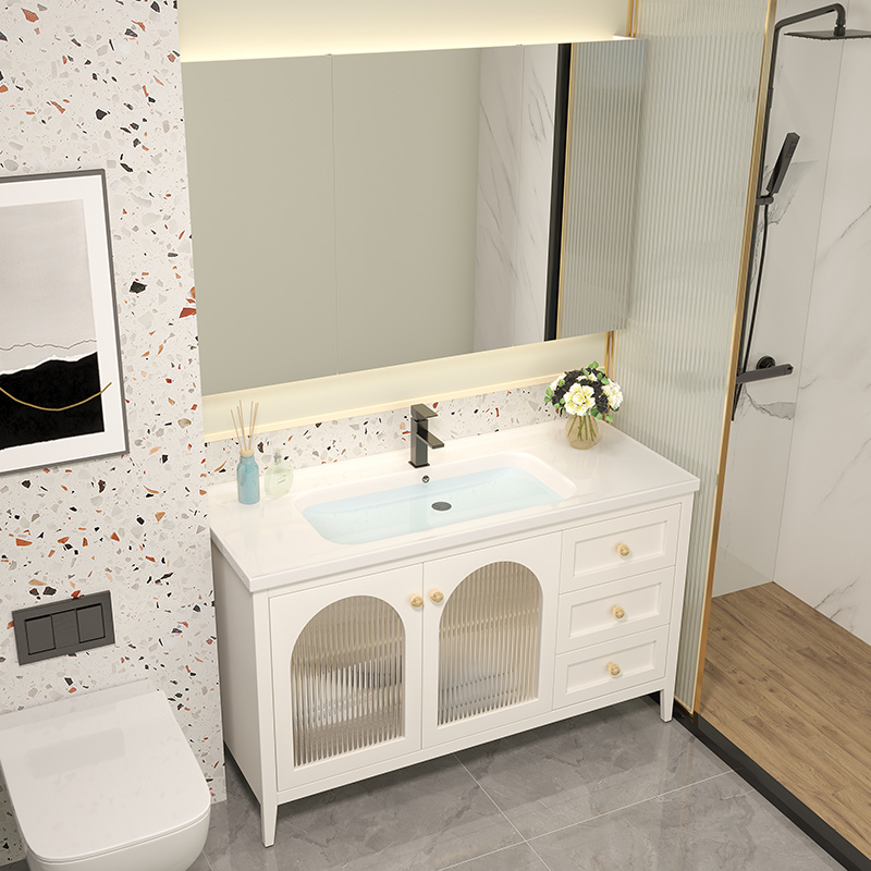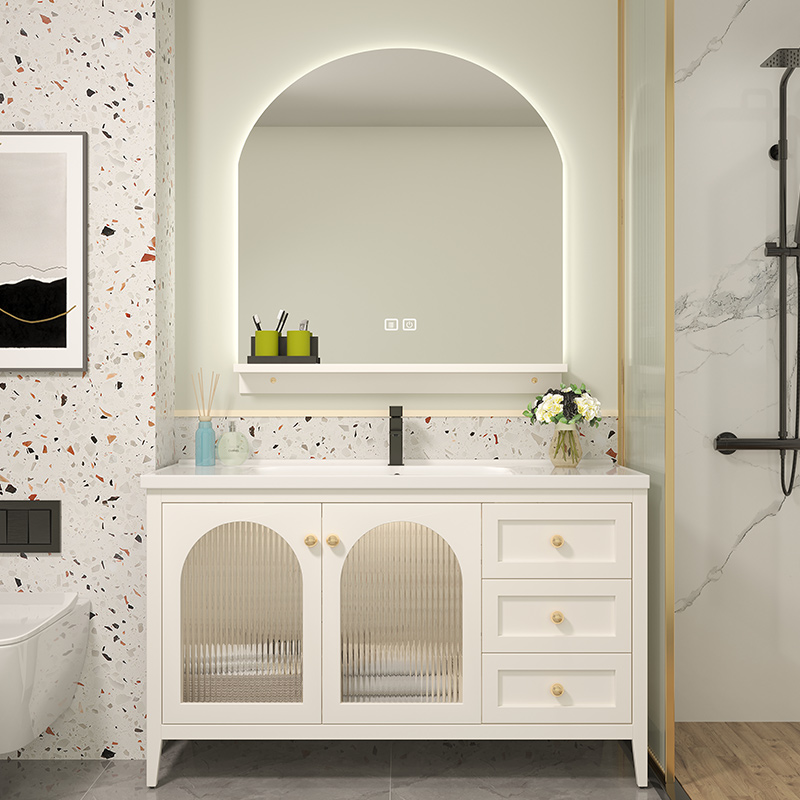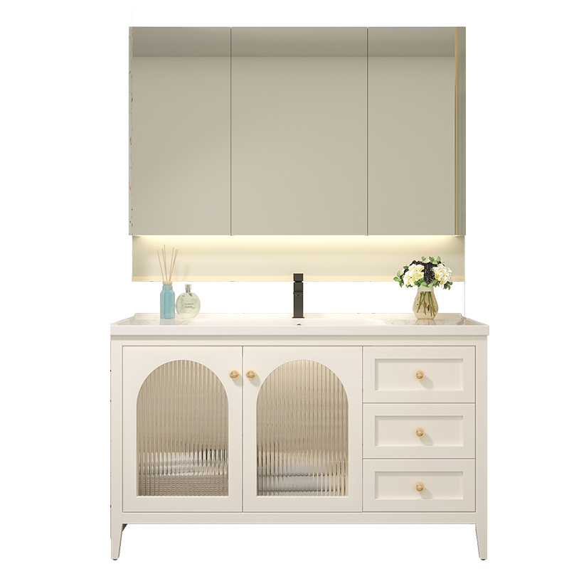 French oak floor-to-ceiling bathroom cabinet smart mirror washstand washbasin rice milk white warm tone combination cabinet can be customized - Taobao