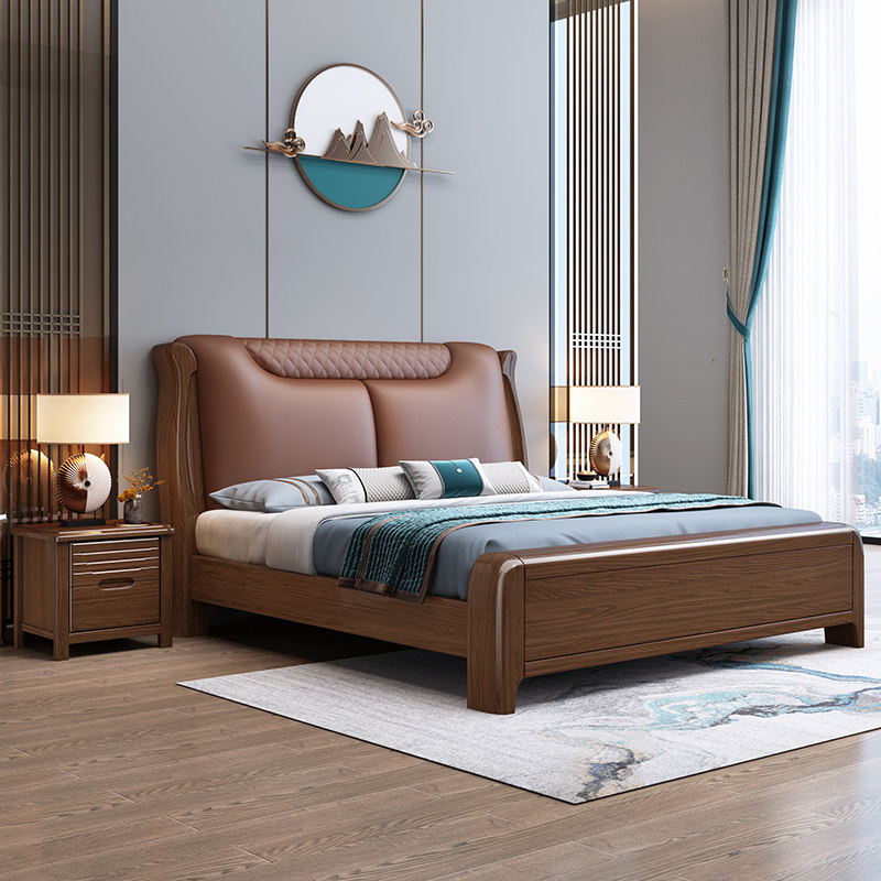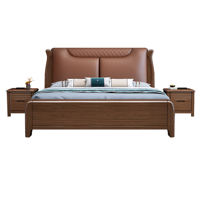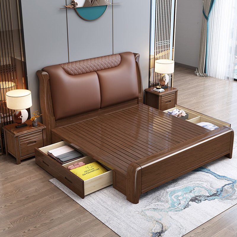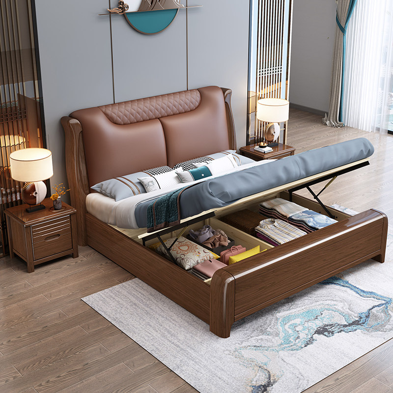Walnut light luxury solid wood bed 1 8 master bedroom double bed modern simplicity 1 5 meters small house storage marriage bed