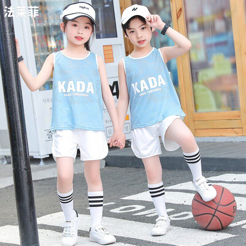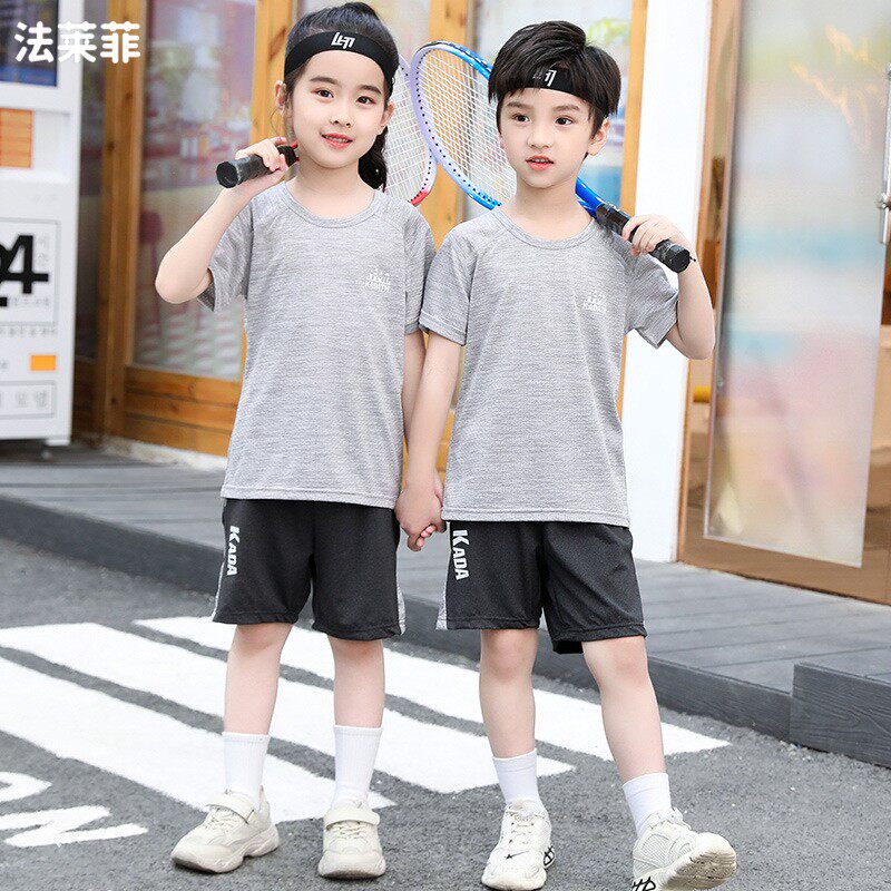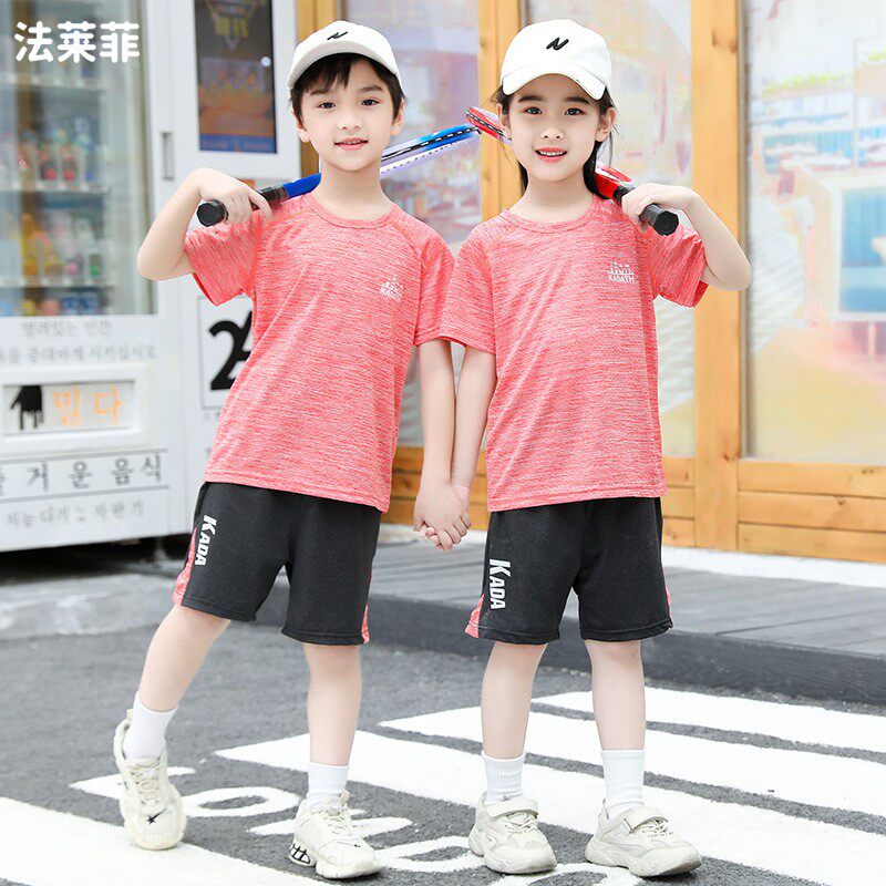 Children's T-shirt suit summer boys and girls outdoor sports running baby breathable quick-drying clothes big children's basketball clothes