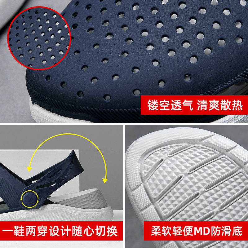 2022 new summer cave-hole shoes men's anti-wear and abrasion resistant soft-bottom men sandals Outdoor wearing beach Baotou sandals