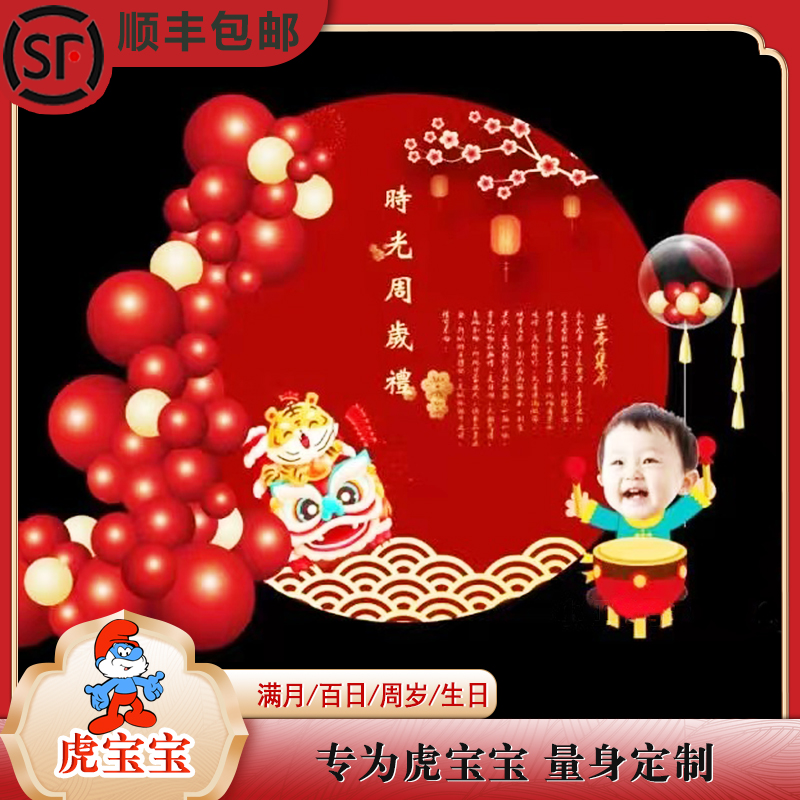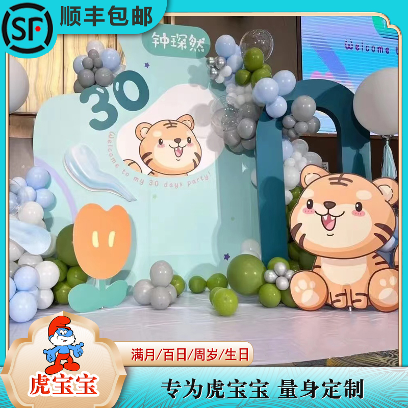 Tiger baby full moon banquet decoration tiger baby hundred days layout first birthday layout decoration package background kt board