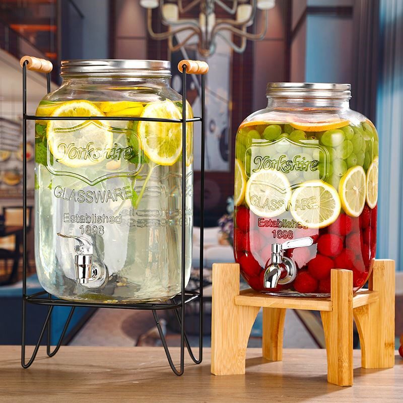 Glass Juice Jar Net Red Coke Barrel Happy Barrel Container Bartending Barrel with Tap Beverage Barrel Beer Fruit Tea Barrel