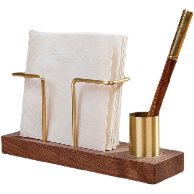 Solid Wood Paper Towel Holder Standing West Restaurant Hupeach Wood Dining Towel Paper Rack Hotel Cafe Bar Table Draw Toilet Paper Box Brass