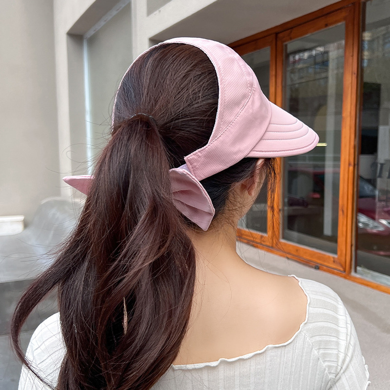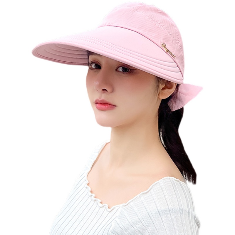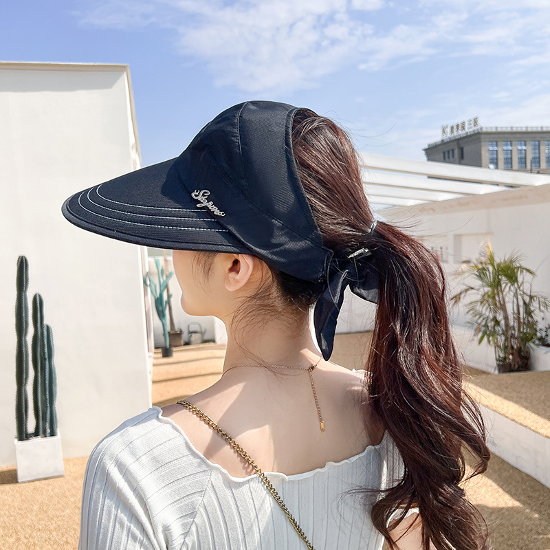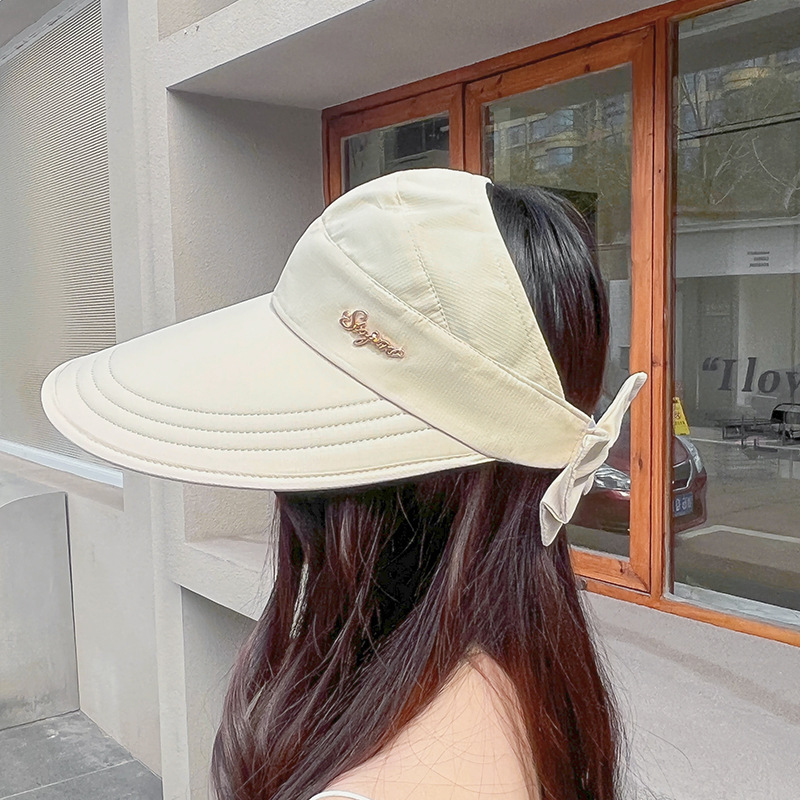 Large head circumference sun hat female summer full face sunscreen anti-UV large brim empty top bow travel sun hat