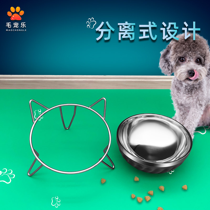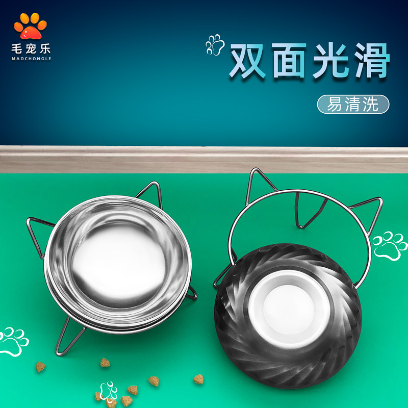 A full set of stainless steel pet bowl cat bowl anti-overturn oblique mouth neck cat and dog food single bowl cat bowl small and medium dog food bowl