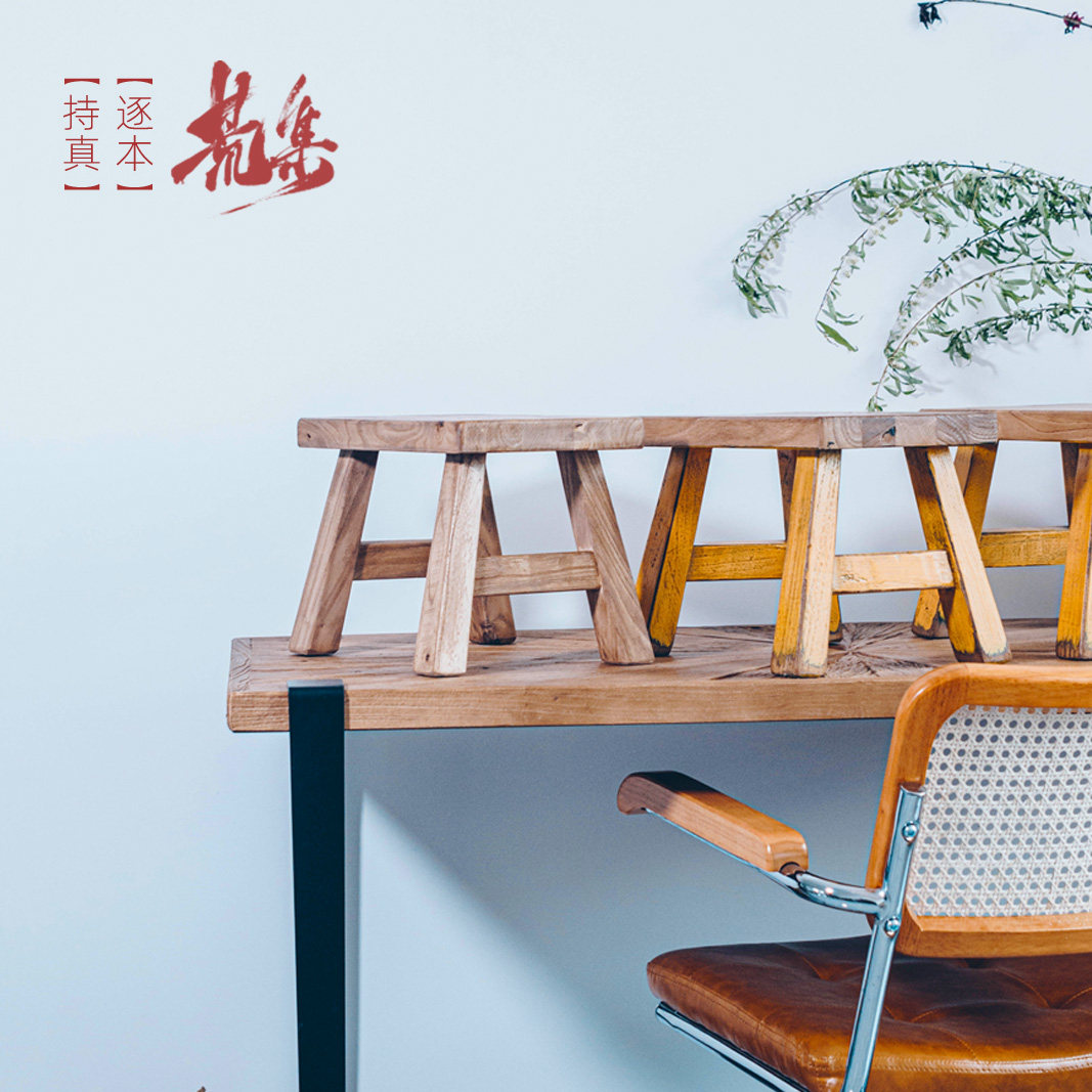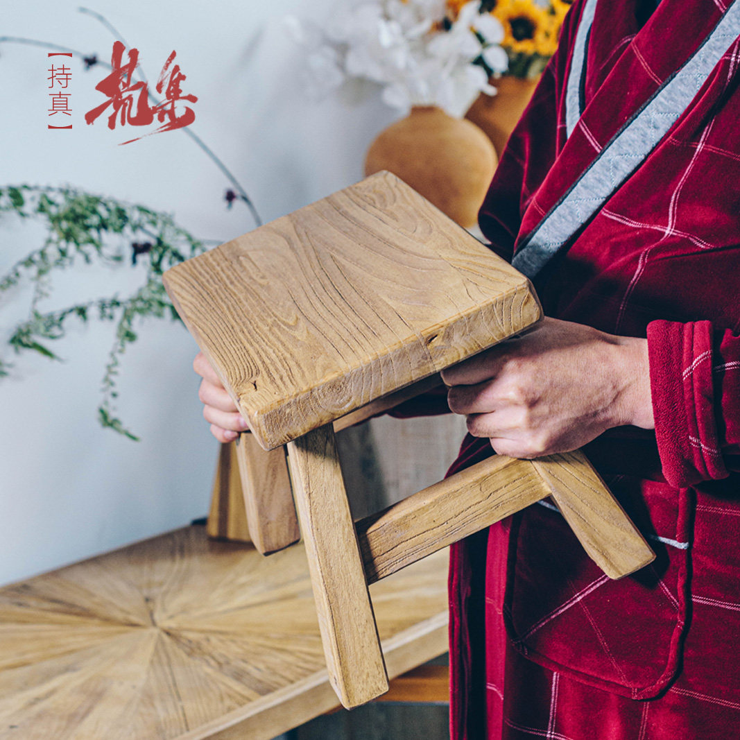 Wild set (solid wood small bench Chinese-style log color adult shoe-changing stool old elm retro style low stool wabi-sabi wind