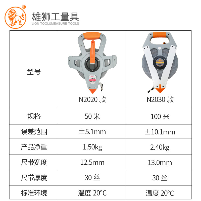Lion N2020 nylon waterproof steel ruler 50 meters aluminum alloy ruler stainless steel ruler 100 meters wear resistant ruler