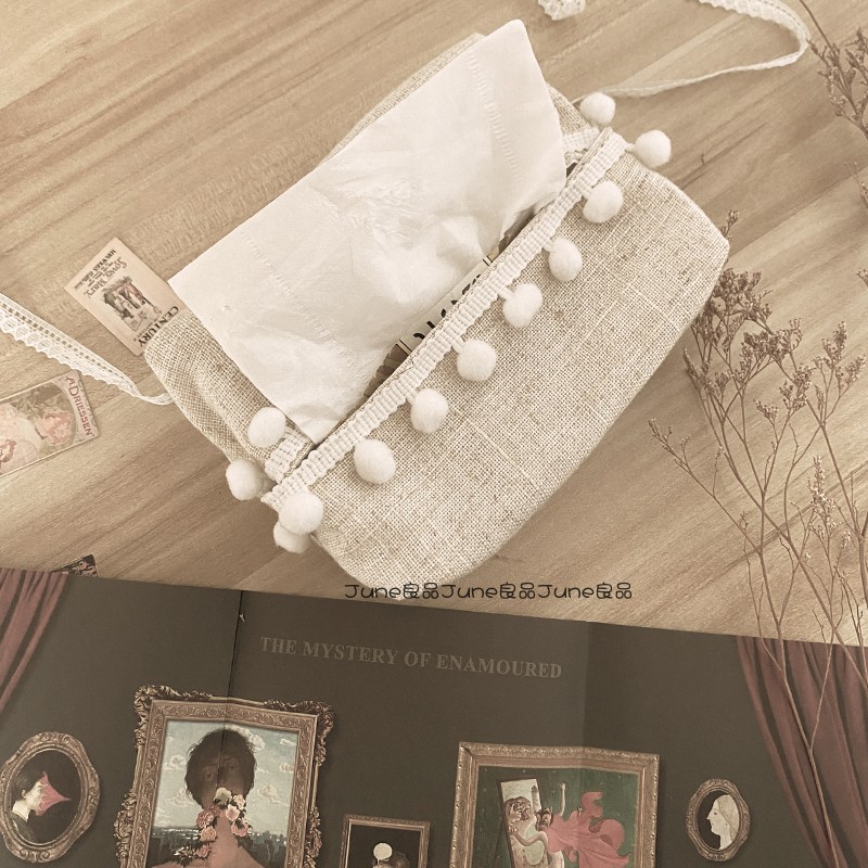 Japanese style simple linen tissue box double layer fabric stream Solo ball towel sleeve living room to collect paper towel bag