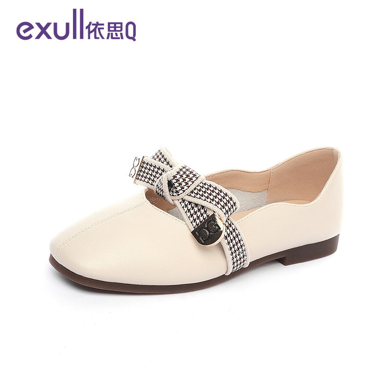 Yithq Genuine Leather Women's Shoes Square Head Mary Treasures Shoes College Wind Rice White Small Leather Shoes Butterfly Knot 100 Hitch Women's Shoes