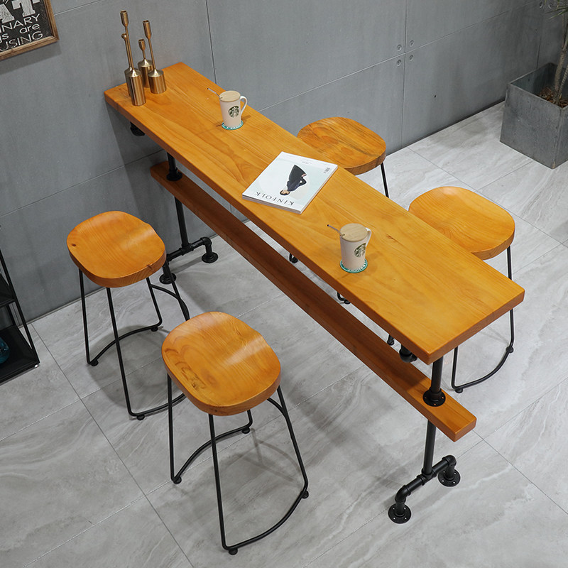 Solid wood pipe bar table balcony wall simple high-foot table Iron tablecoffee table Commercial bar table
