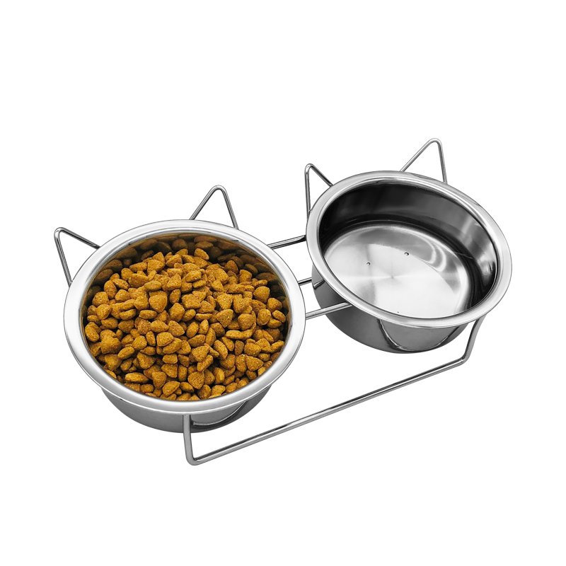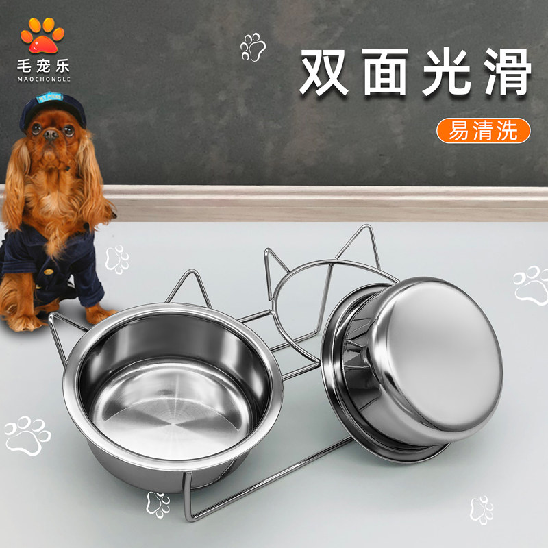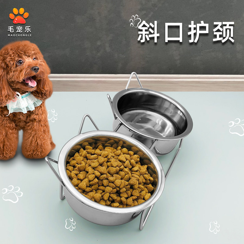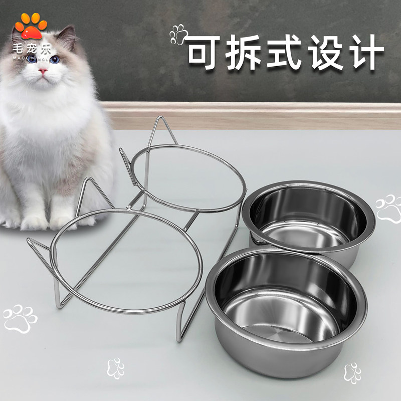 Small and medium-sized full set of stainless steel cat bowl dog bowl bracket non-slip oblique cat food pet food basin double bowl anti-bite