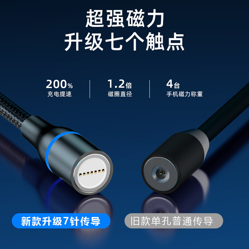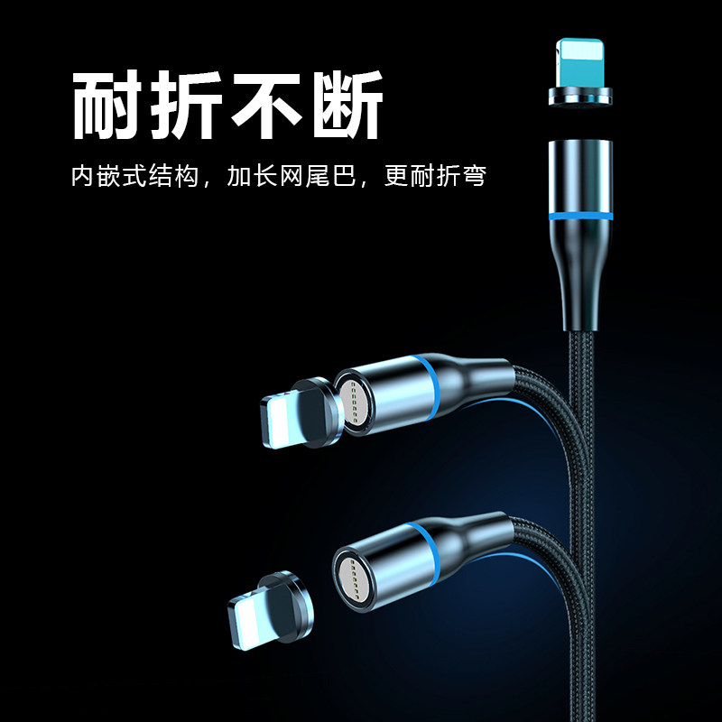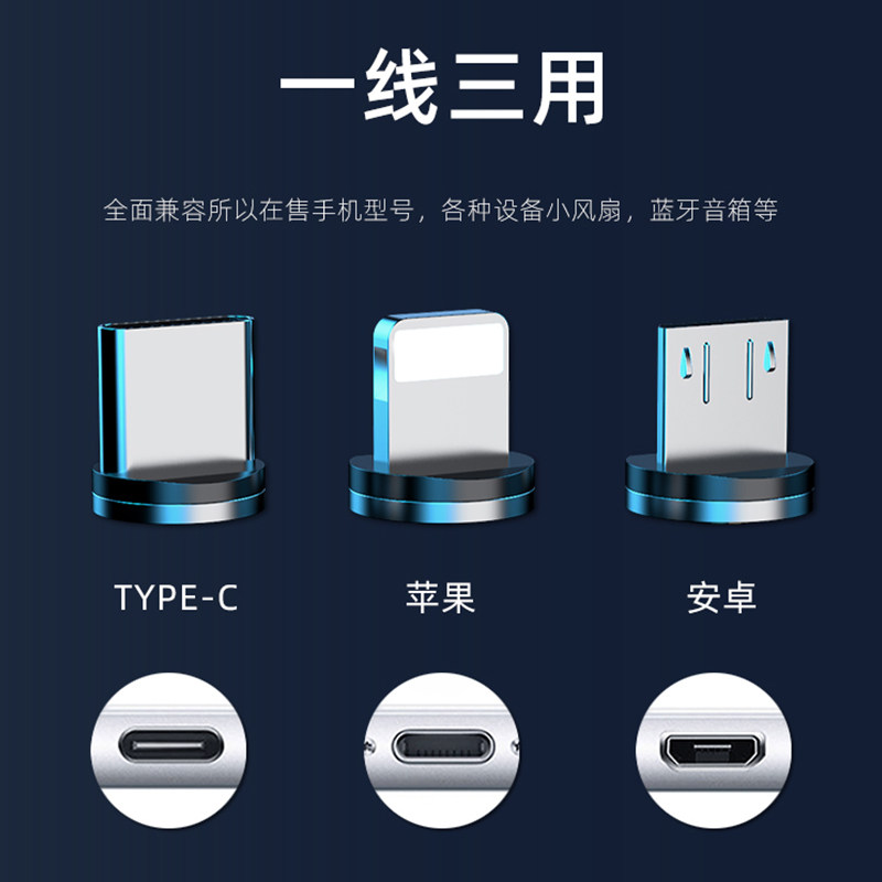 5A super fast charging magnetic suction data cable three-in-one flash charging cable powerful magnet head iron-absorbing stone one-to-three car suitable for Huawei oppo millet vivo apple type-c Android mobile phone