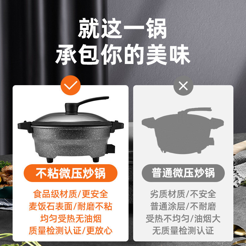 Micro-piezoelectric frying pan household multi-function cooking pot Maifan stone non-stick pot all-in-one plug-in cooking electric pot quick-cooking pot