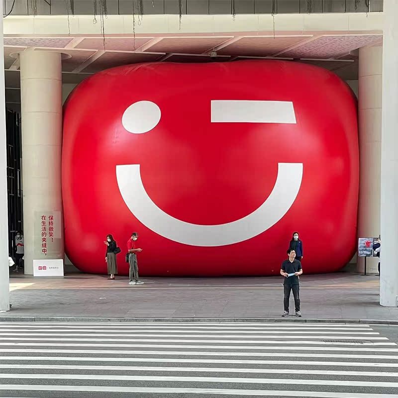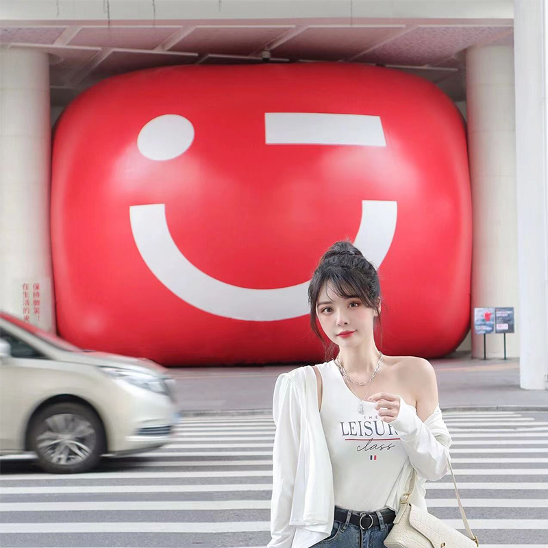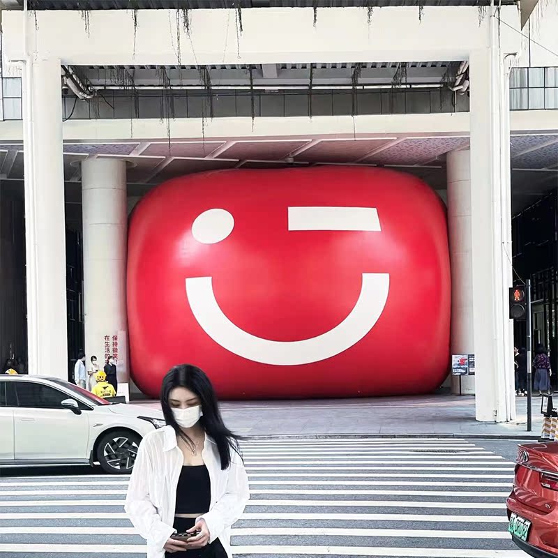 World Smile Day Inflatable smiley ball Creative installation in the atrium of the shopping mall Air-holding PVC clip mesh model customization