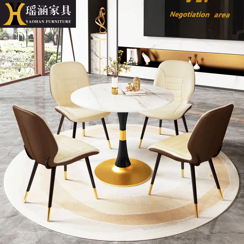 Light luxury slate negotiation table and chair combination home balcony office sample house exhibition center reception reception leisure small round table and chairs