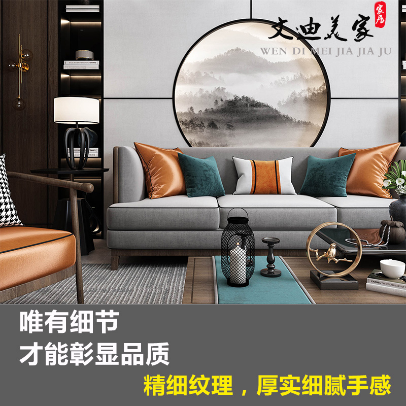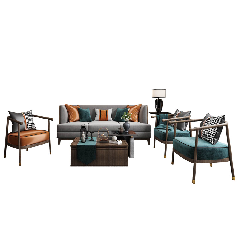New Chinese-style solid wood sofa combination modern minimalist living room Nordic furniture light luxury small apartment plus fabric sofa