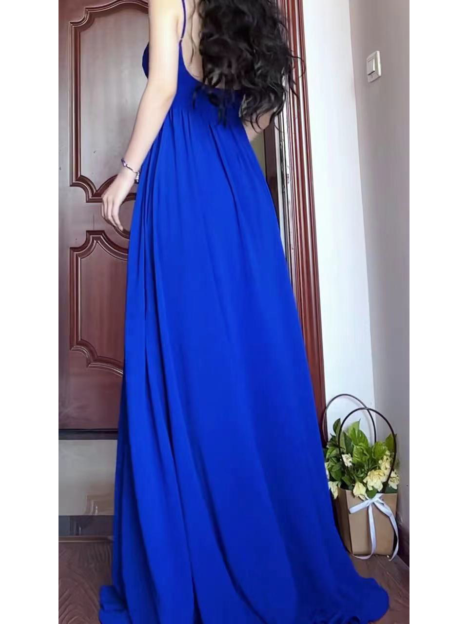 2022 Summer new French fame style Klein Blue Hanging Dress Superior Fusion Dress