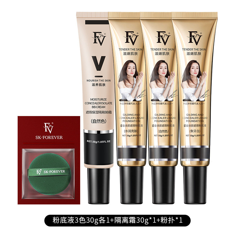 FV GOLD POWDER BASE FLUID PERSISTENT CONTROL OIL FLAWLESS MOISTURIZING WATER RESISTANT PERSPIRATION NO DEMAKEUP MIXED OIL LEATHER DRY LEATHER WOMEN BB CREAM