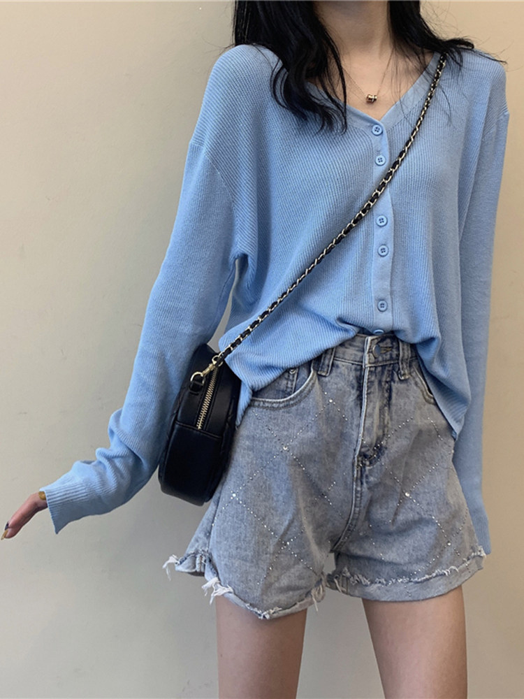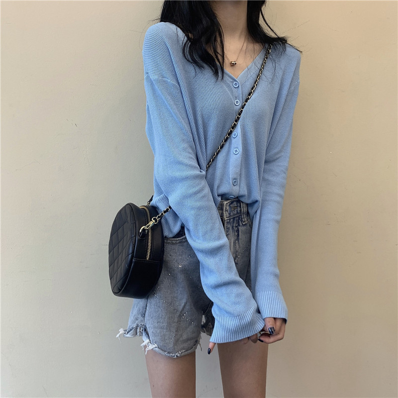 Lisa same style jazz jazz dance ice silk thin section outer wear small shirt female V-neck long-sleeved knitted cardigan jacket trendy